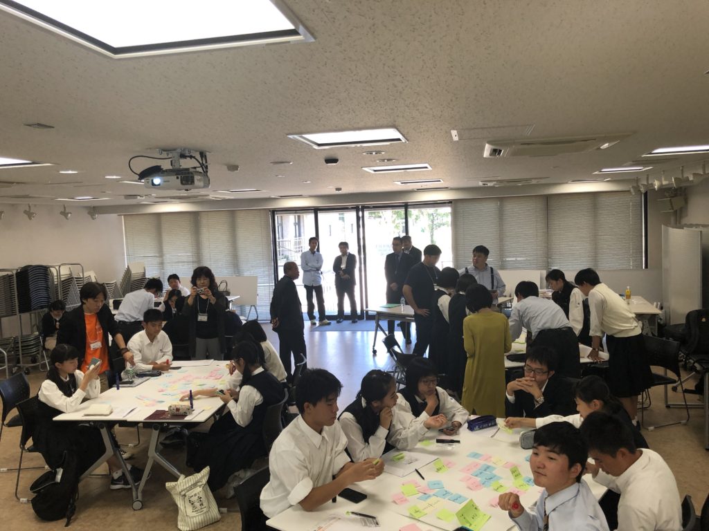 カンファレンスでは、総務省九州総合通信局の荒金真史 電気通信事業課長からご挨拶をいただいたあと、NetComさが理事長の牛島から「SNSとの上手な付き合い方」というタイトルでミニ講演を実施。各校の参加者が自己紹介を行った後、他校の生徒との混成チームを作り、グループ討議を行いました。各グループのチームファシリテータには、Code for Sagaのメンバーを配置しディスカッションの進行をサポートしました。
